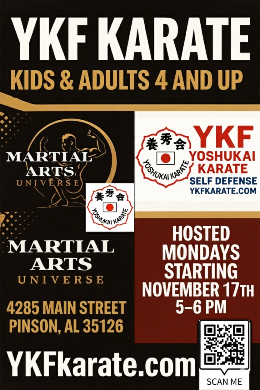 Instruction in YKF classes remain rooted in classical karate application, with emphasis on forms (kata), weapons training, and full-contact sparring. Students will train with traditional weapons including the bo, nunchaku, sai, tonfa, and samurai sword. Conditioning is also a key part of every class, and our style of sparring incorporates leg kicks, knees, and elbows to develop real-world strength, control, and endurance.